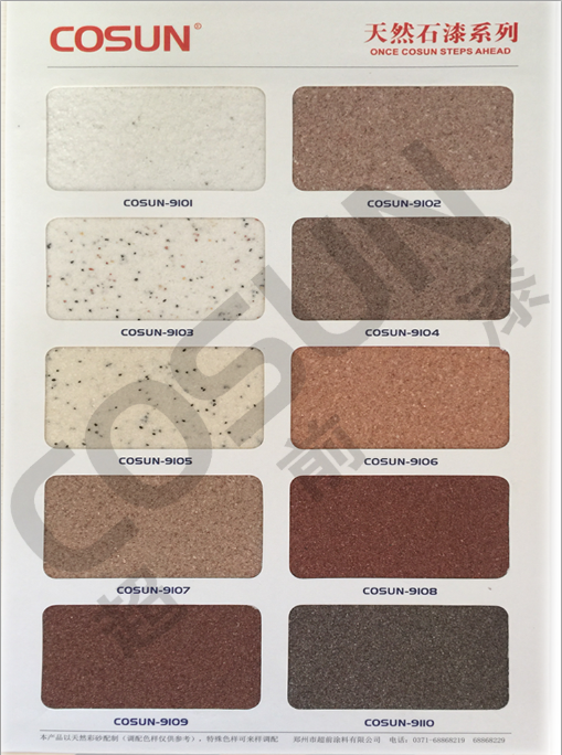 超前天然真石漆系列色卡由鄭州超前技術研發制作,色卡只展示公司個別產品,如果想了解更多有關真石漆相關產品可以點擊
